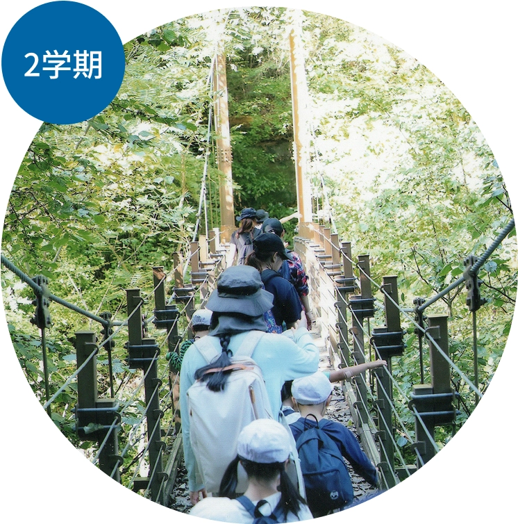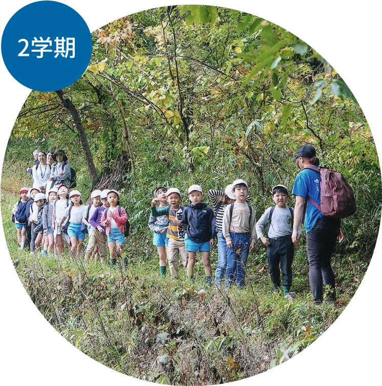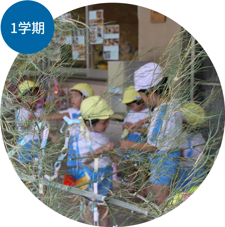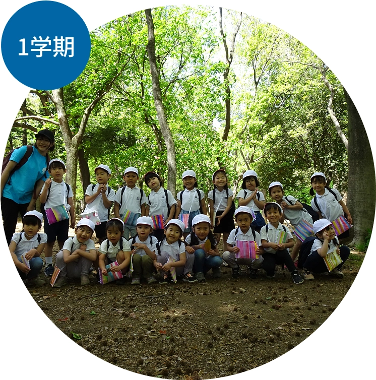 大きないちょうの木にぎんなんが実り、キンモクセイが香ります。年中クラスはみんなで頑張って大きな絵を仕上げて、絵画展に出品。年長クラスは秋の里山におでかけして、秋を楽しみます。