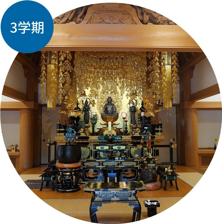 12月8日は成道会。皆でお釈迦様のお悟りをお祝いします。年少・年中クラスは歌でお祝い、年長クラスは全員で「金色の鹿」の劇を通して、遠い昔にお釈迦様が説かれた教えに触れ、命の尊さを学びます。