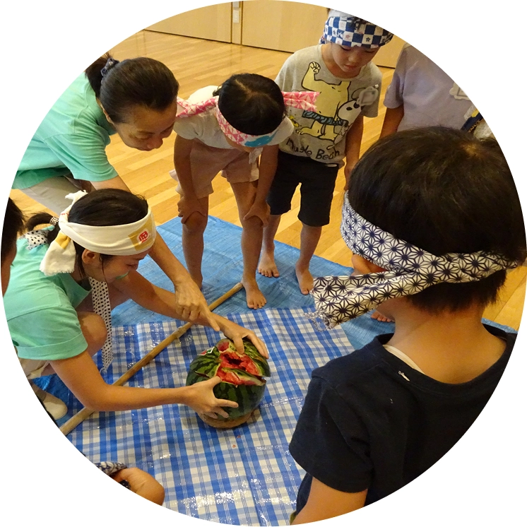 長い夏休みの終わりに、3日間の夏期保育。久しぶりに会う先生やお友達と、色々なお楽しみをします。幼稚園がこども達のうれしい声でいっぱいになります。